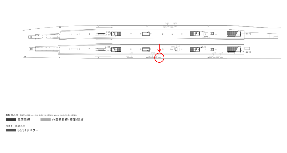 ○№2-110 改札内コンコース(ホーム階段正面 西改札口側) |