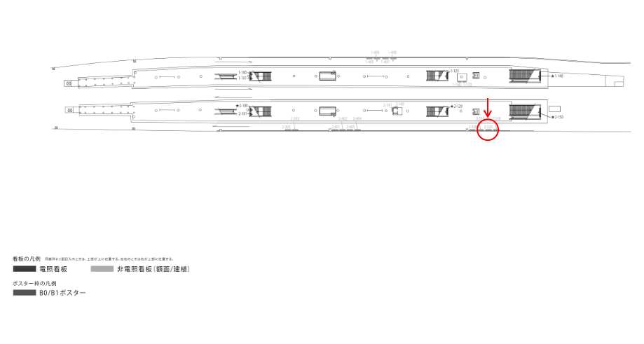 ○№2-110 改札内コンコース(ホーム階段正面 西改札口側) |