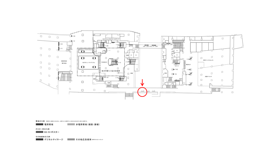 ○№1-300 改札内コンコース(ホーム階段正面 京阪本線ホーム) |