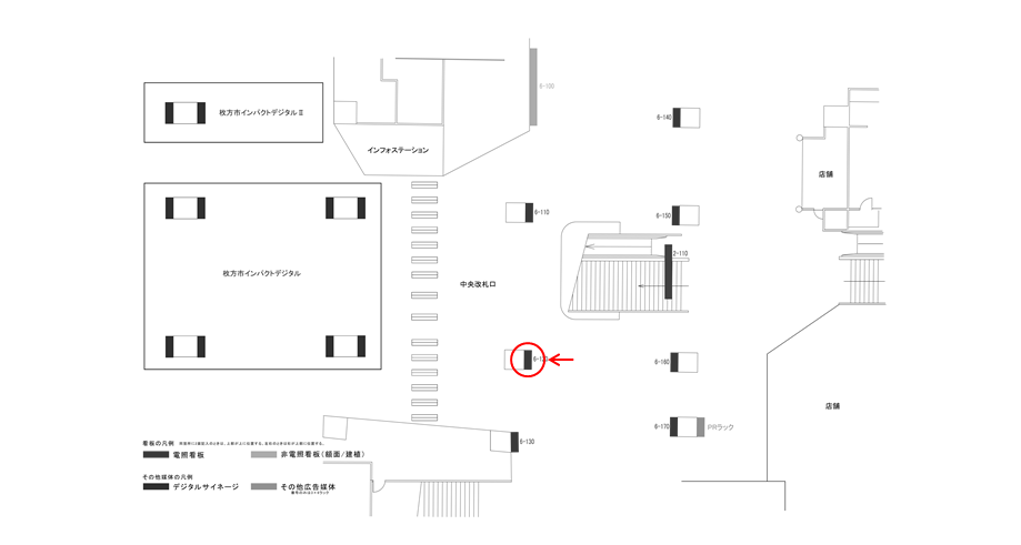 ○№6-110 改札内コンコース(中央改札口 柱看板) |