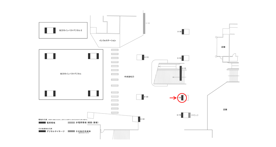 ○№6-110 改札内コンコース(中央改札口 柱看板) |