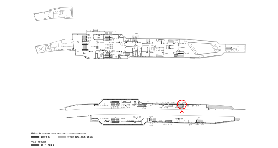 ○№8-110 改札外コンコース(南改札口 出口階段正面) |