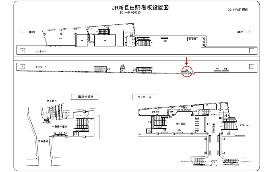 下りホーム(西明石・姫路方面)にて電車をお待ちの方々に訴求することができます。