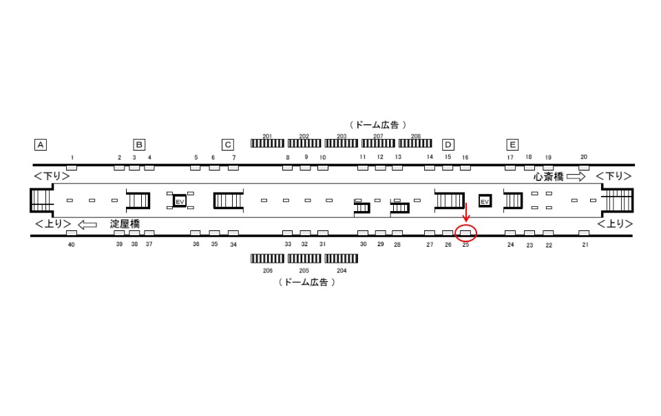 上りホーム(淀屋橋方面)にて電車をお待ちの方々に向けて訴求することができます。