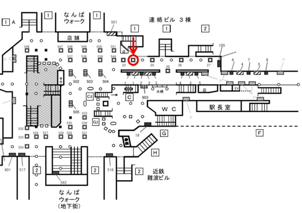 周辺には駅中のコンビニエンスストアやコインロッカーなどの利用者も多く滞留するような場所です。