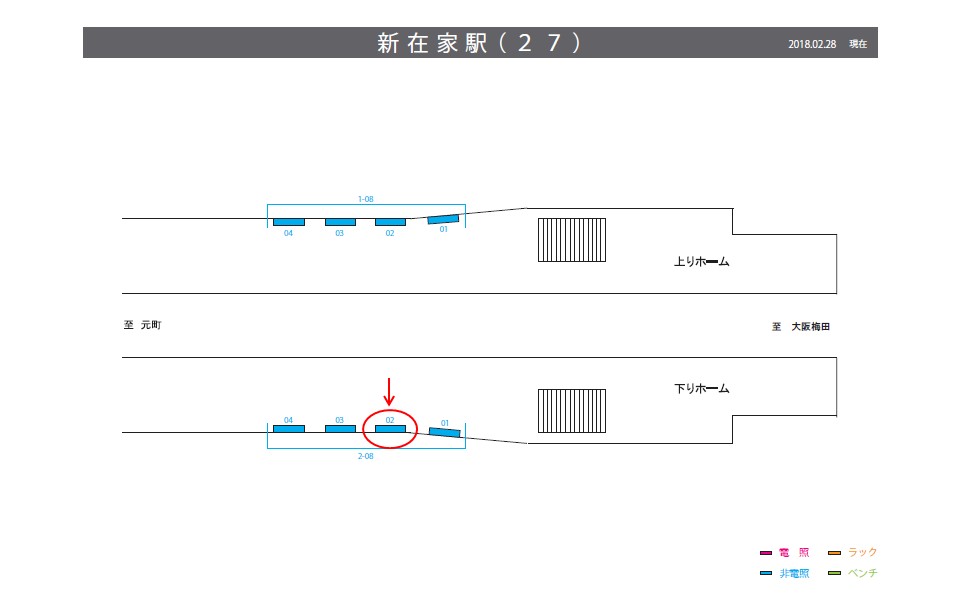新在家駅のホームに掲出する非電照タイプの看板となります。