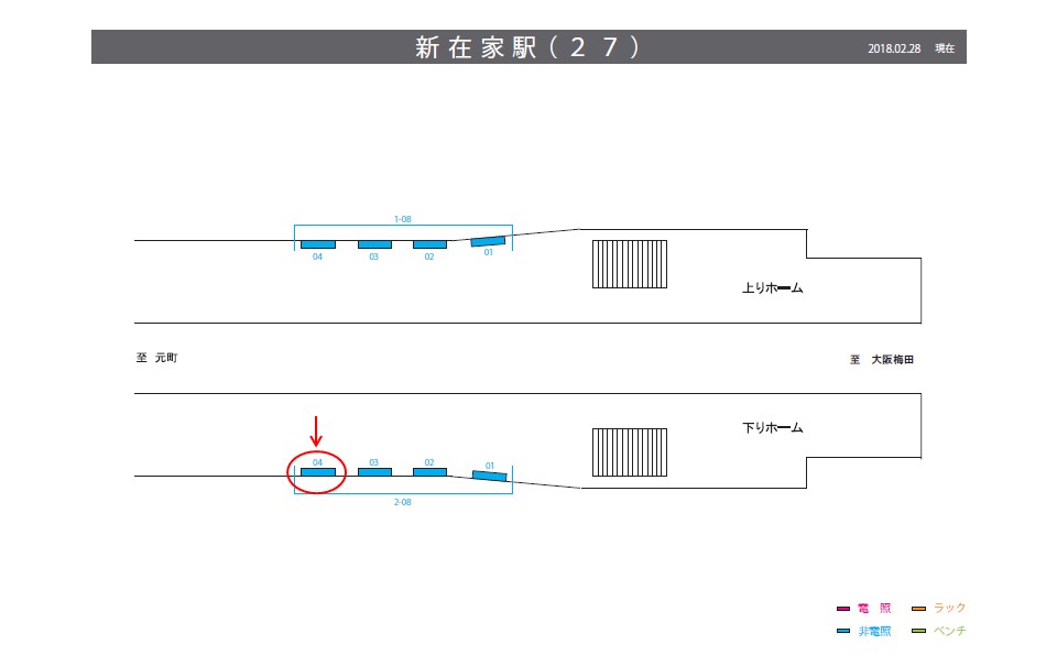 新在家駅のホームに掲出する非電照タイプの看板となります。