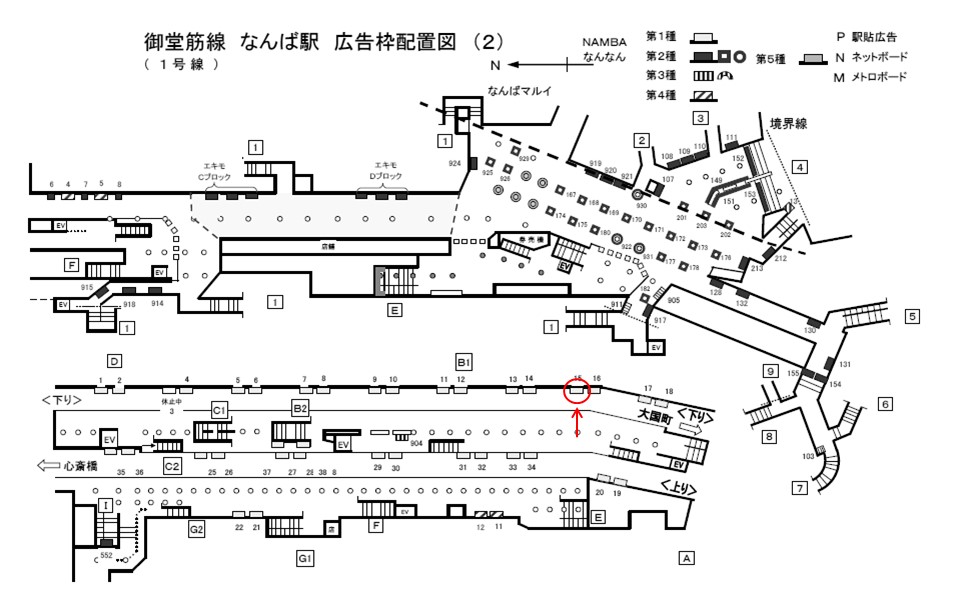 Osaka Metro なんば駅、ホームの駅広告(駅看板)設備のご紹介です。