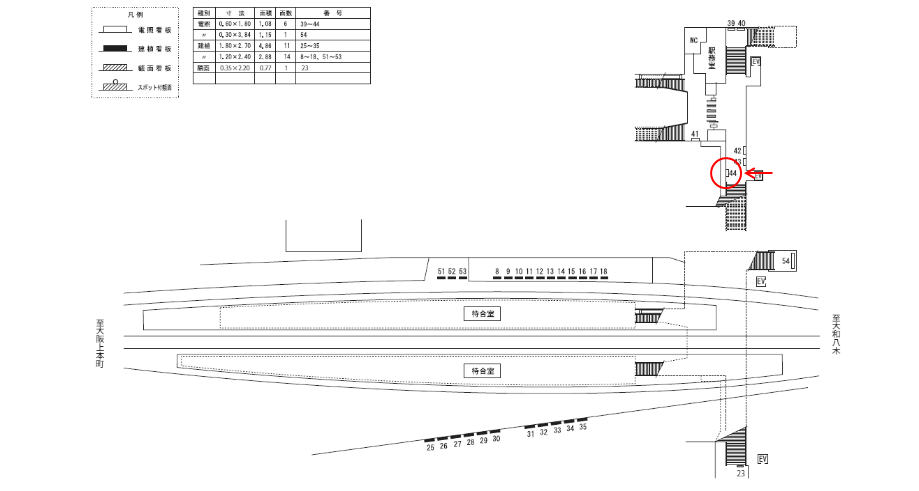 駅構内にある駅看板は「これから電車に乗る方」もしくは「駅を出る方」に見てもらえます。いずれにしても駅を利用するタイミングで広告に接触します。移動中に見てもらえる駅構内の駅看板は、高安駅の周辺にある店舗施設の紹介や道案内に利用されています。特に駅の出口付近にある駅看板は、店舗までの距離が近く案内看板に適しています。