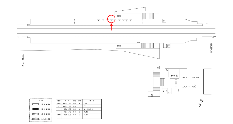 駅看板「近鉄 恩智駅 №4」は近鉄 恩智駅の近鉄大阪線 榛原方面のホーム上にある看板です。