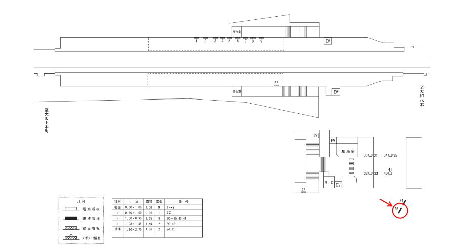 駅看板「近鉄 恩智駅 №25」は近鉄 恩智駅の駅舎外にある看板です。