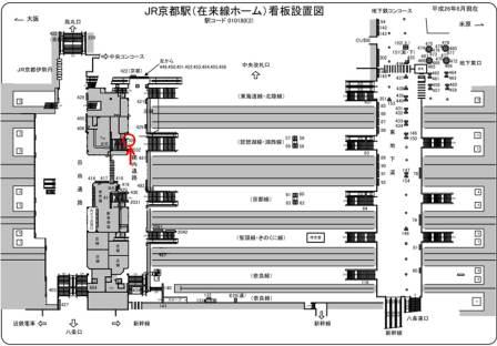 JR京都線2・3番線ホーム(湖西線・琵琶湖線)へ向かう際の階段にございますので