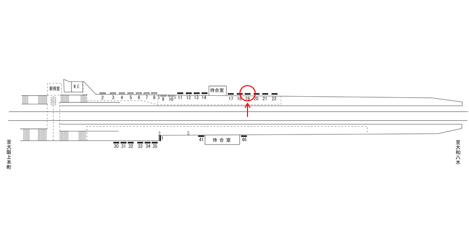 駅看板「近鉄 堅下駅 №19」は近鉄 堅下駅の近鉄大阪線 榛原方面のホーム上にある看板です。