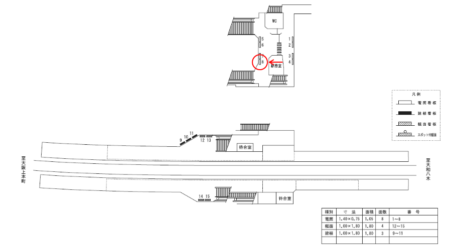 この看板以外にも改札の周辺の看板でしたり、7日間から使えるポスター広告などがあります。