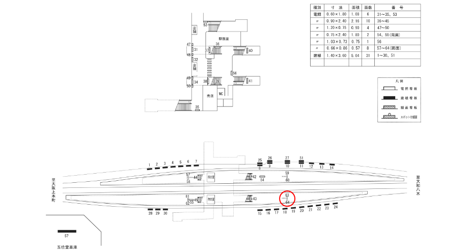 駅看板「近鉄 五位堂駅 №64」は近鉄 五位堂駅の近鉄大阪線 大阪上本町方面のホーム上にある電飾看板です。