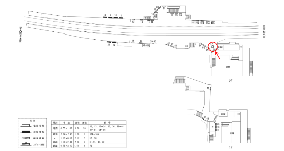 ○№57 ホーム上(近鉄大阪線 大阪上本町・大阪難波方面ホーム 改札口付近 柱) |