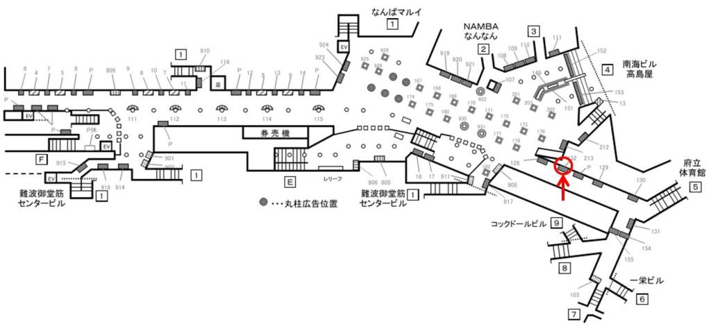 Osaka/Metro(大阪メトロ) なんば駅/御堂筋線№2-132№132、位置図