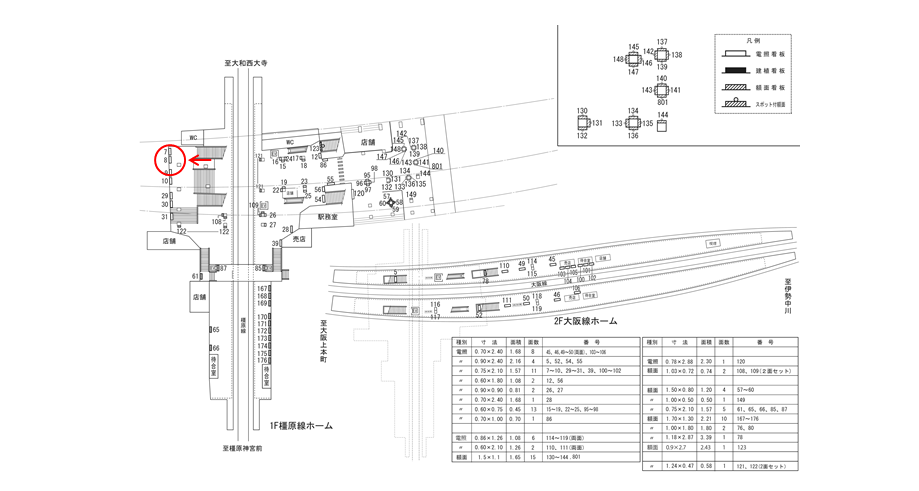 ○№18 柱看板(改札内コンコース/近鉄橿原線 橿原神宮前方面ホーム上) |