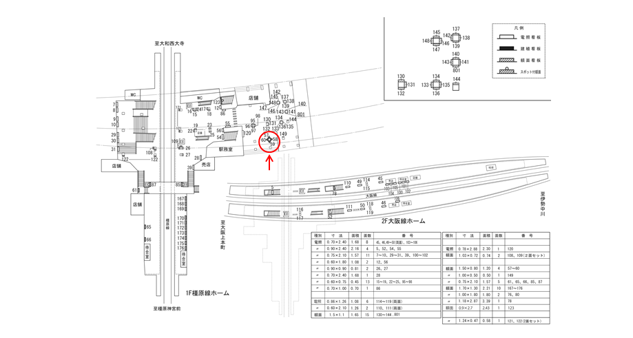 近鉄/大和八木駅//№59駅看板・駅広告、位置図