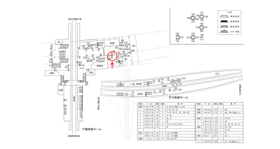 ○№18 柱看板(改札内コンコース/近鉄橿原線 橿原神宮前方面ホーム上) |