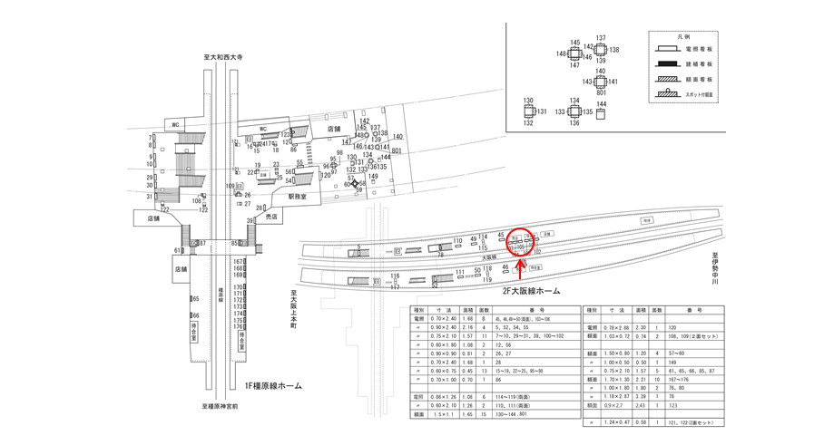 ○№18 柱看板(改札内コンコース/近鉄橿原線 橿原神宮前方面ホーム上) |
