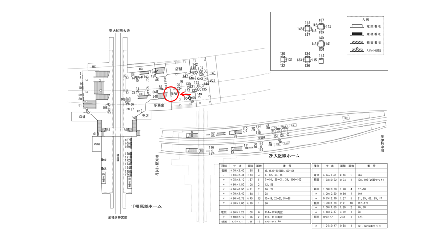 ○№18 柱看板(改札内コンコース/近鉄橿原線 橿原神宮前方面ホーム上) |