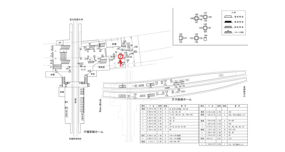 ○№18 柱看板(改札内コンコース/近鉄橿原線 橿原神宮前方面ホーム上) |