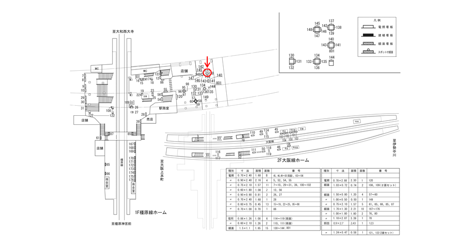 ○№18 柱看板(改札内コンコース/近鉄橿原線 橿原神宮前方面ホーム上) |