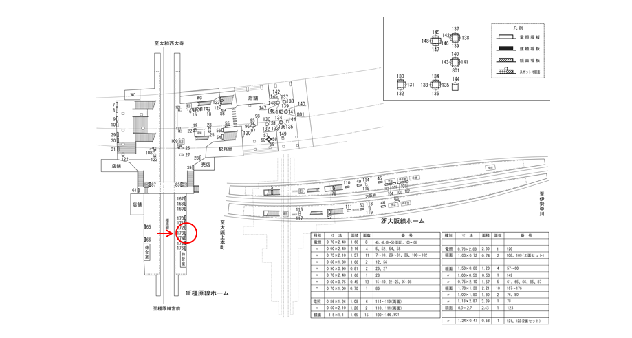 ○№18 柱看板(改札内コンコース/近鉄橿原線 橿原神宮前方面ホーム上) |