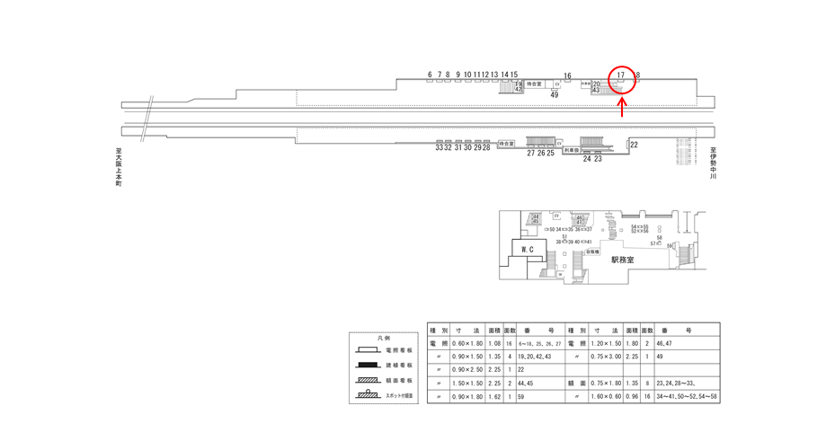 ○№43 ホーム上(近鉄大阪線 名張・五十鈴川方面ホーム ホーム階段正面) |