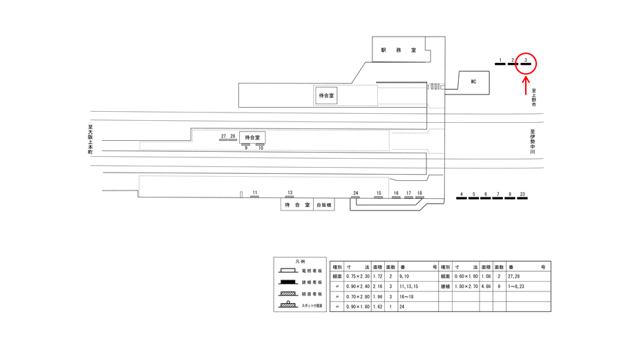 線路向こうにある看板は電車を待っている駅利用者に見てもらえます。待ち時間を使った接触時間の長い広告です。接触時間を長く取れる線路向こうにある看板は広告の内容を理解してもらいやすいことから、企業広告やサービス・商品紹介の周知に利用されています。駅を毎日使う「伊賀神戸駅に生活基盤をもつ方」を対象とした広告にオススメです。