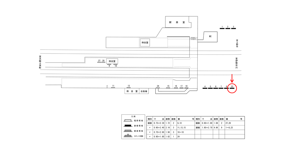 駅看板「近鉄 伊賀神戸駅 №23」は近鉄 伊賀神戸駅の近鉄大阪線 伊勢中川・五十鈴川・賢島方面の線路前にある看板です。
