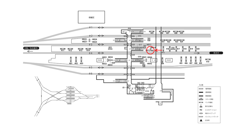 ○№H042 ホーム上(近鉄名古屋線 近鉄名古屋方面ホーム) |