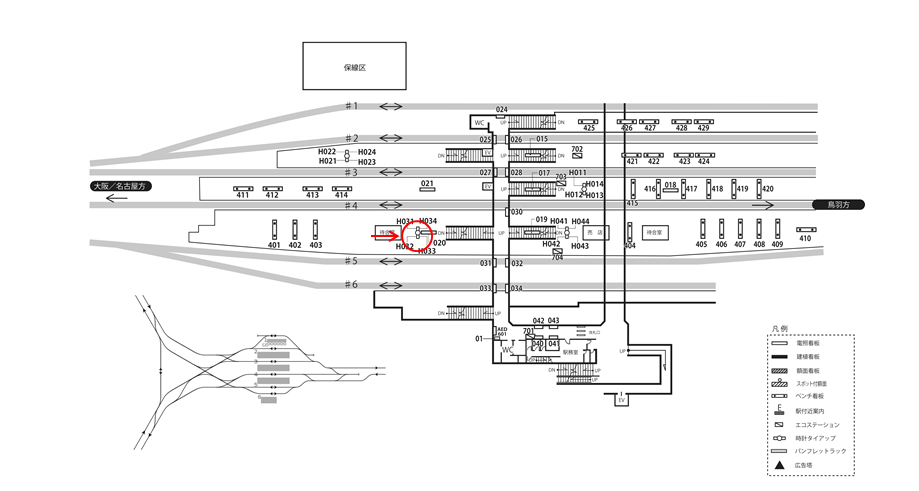 近鉄/伊勢中川駅/№H032№032駅看板・駅広告、位置図