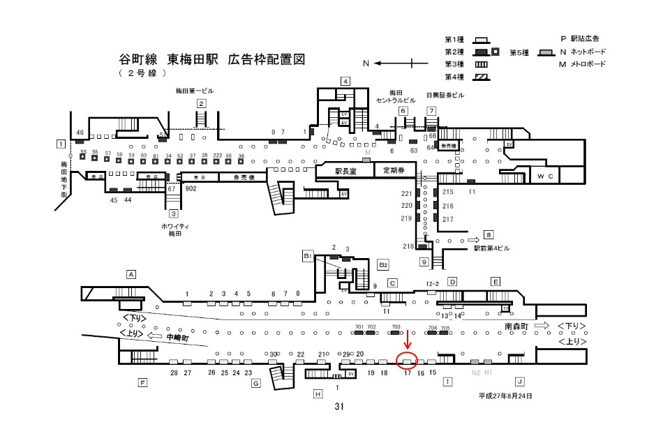 地下鉄東梅田駅、ホームの駅広告(駅看板)設備のご紹介です。