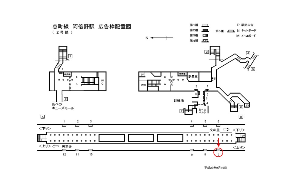 谷町線 阿倍野駅の上りホームに設置された、電飾タイプの広告看板です。