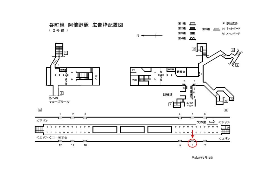 谷町線 阿倍野駅の上りホームに設置された、電飾タイプの広告看板です。