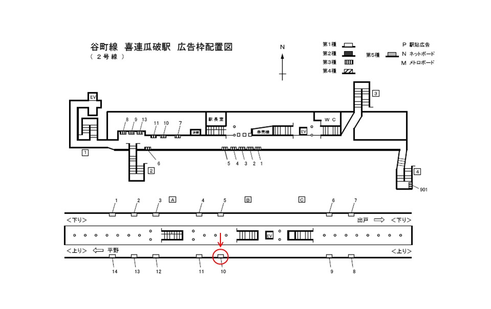 地下鉄喜連瓜破駅、ホームの駅広告(駅看板)設備のご紹介です。