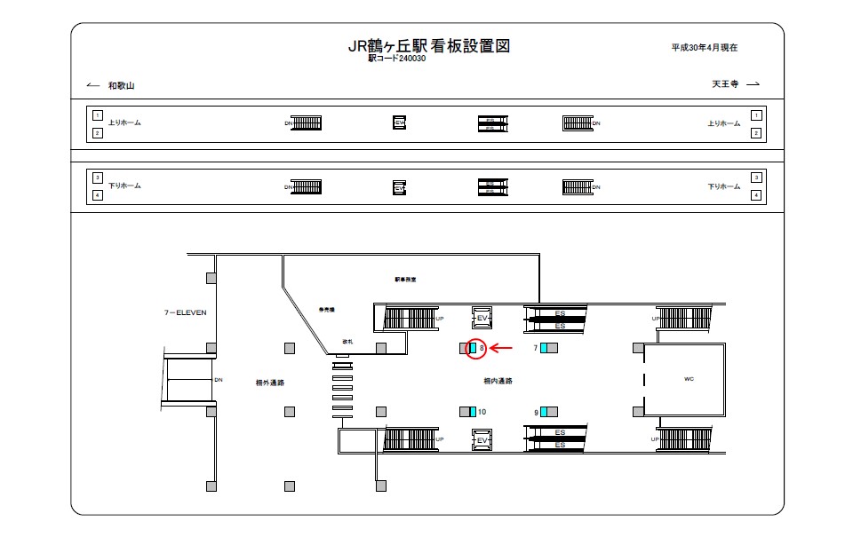 ホームと改札を行き来される方々に視認されることで接触機会が多い看板となります。