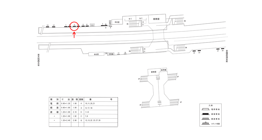 近鉄 西ノ京駅の駅看板の利用状況はスタッフまでお問い合わせください。この看板はもちろんですが、他にもいい広告看板が空いていれば合わせてご案内差し上げます。