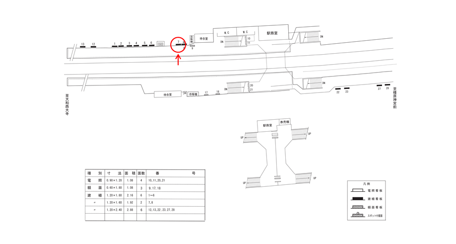 近鉄 西ノ京駅の駅看板の利用状況はスタッフまでお問い合わせください。この看板はもちろんですが、他にもいい広告看板が空いていれば合わせてご案内差し上げます。