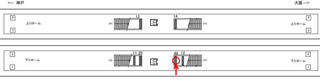 1・2番線ホームをご利用の方々、特に尼崎・大阪・京都方面から六甲道駅で下車される方々にご覧頂ける媒体となります。