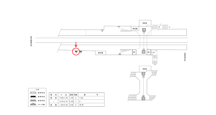 駅看板「近鉄 八木西口駅 №29」は近鉄 八木西口駅の近鉄橿原線 大和西大寺・京都方面のホーム上にある看板です。