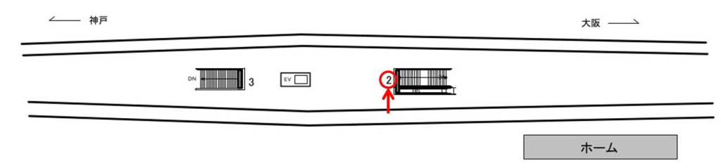 JR神戸線 さくら夙川駅、ホーム階段見附の駅広告(駅看板)です。