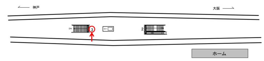 JR神戸線 さくら夙川駅、ホーム階段見附の駅広告(駅看板)です。