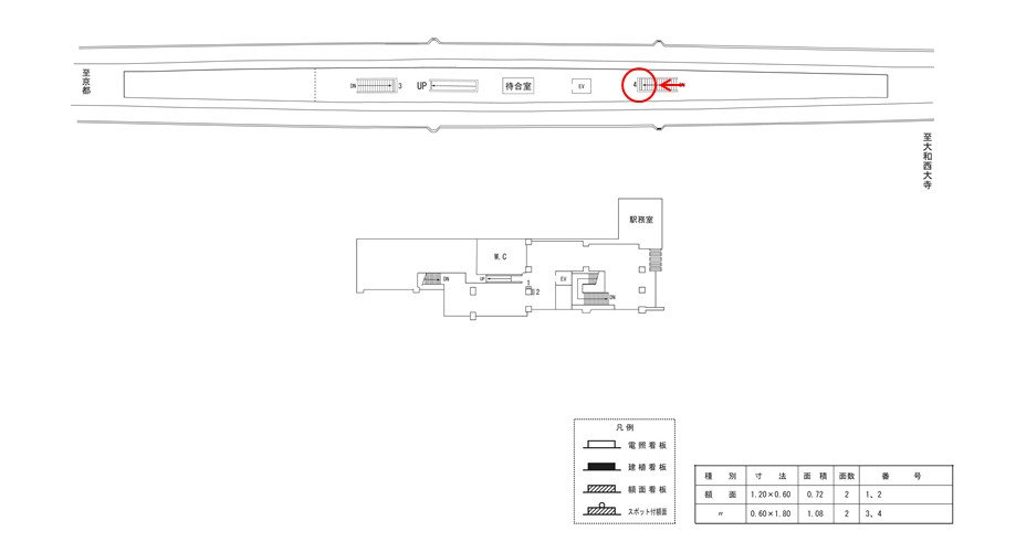 駅看板「近鉄 十条駅 №4」は近鉄 十条駅の近鉄京都線のホーム上の階段正面にある看板です。
