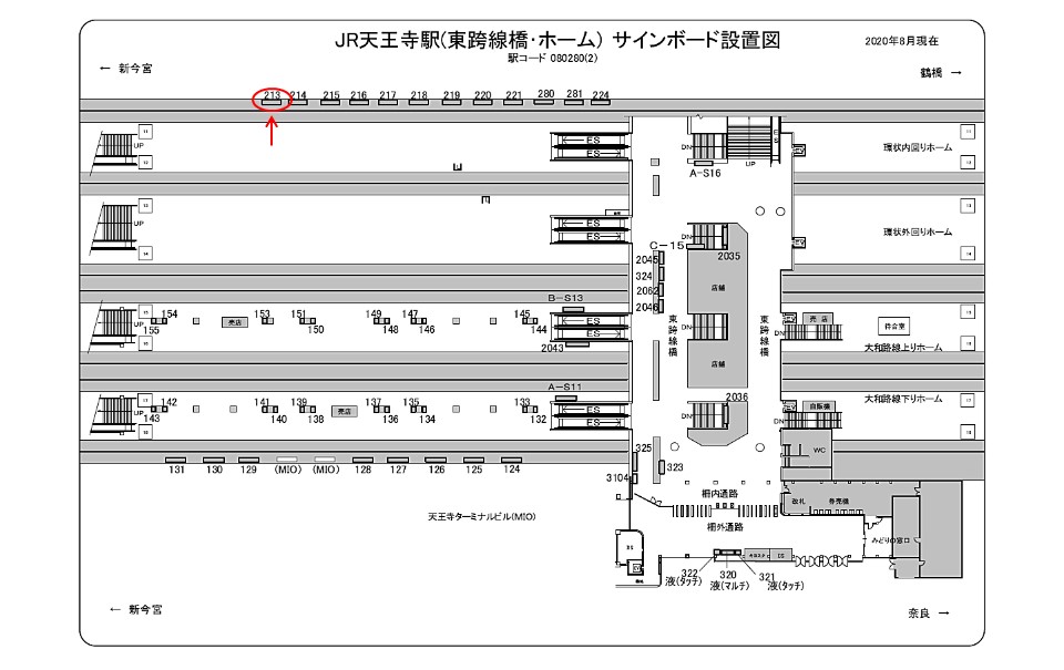 JR天王寺駅、環状内回りホームの線外に掲出された駅看板です。