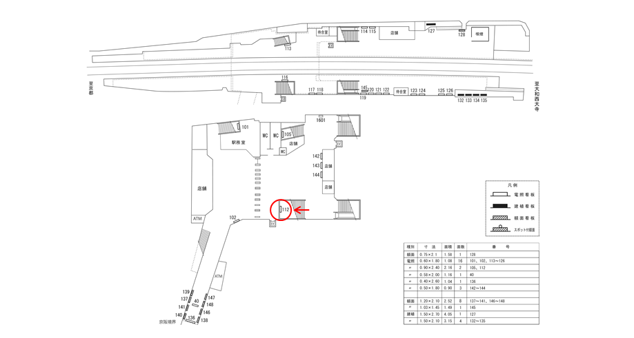 こちらの駅看板は「これから電車に乗る方」に見てもらえます。階段付近は駅利用者が集中するエリアで目に留めてもらいやすい広告ロケーションです。サービス周知や企業広告などに適しており、日常的に駅を使う「近鉄丹波橋駅に生活基盤をもつ消費者」を対象とした広告にオススメです。