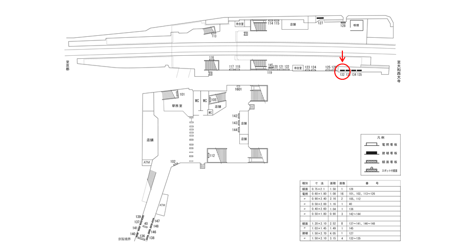 この看板以外にも改札の周辺の看板でしたり、7日間から使えるポスター広告などがあります。