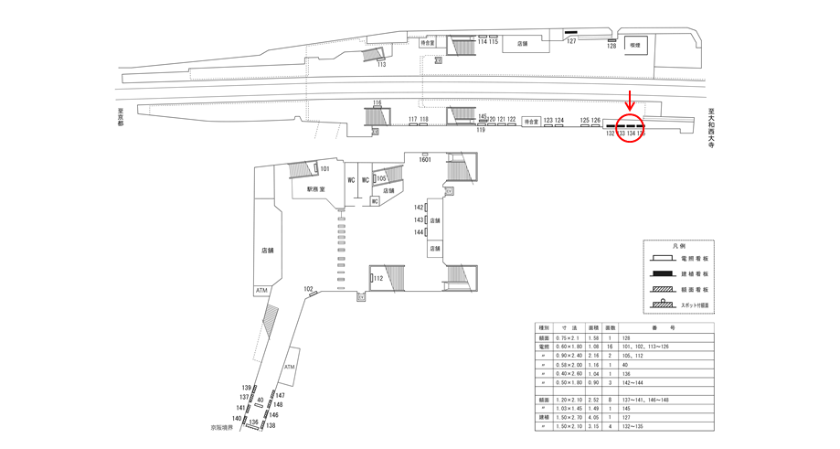 この看板以外にも改札の周辺の看板でしたり、7日間から使えるポスター広告などがあります。